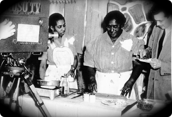 By the spring of 1950, WDSU television cameras had been steadily broadcasting footage of Lena Richard’s New Orleans Cook Book throughout the Crescent City.  According to advertisements in The Times-Picayune, the cooking show aired twice weekly on Tuesdays and Thursdays at 5:00, featuring Lena and her assistant, Marie Matthews.  During the program, Lena guided television audiences through her cookbook, New Orleans Cook Book, published by Houghton Mifflin in 1940.