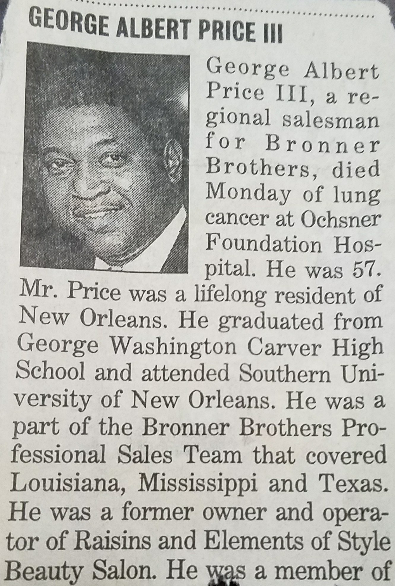 He owned two salons Raisin’s as stated above on Canal St. He sold it to Jeanne’s which was the new name of the salon and also Element’s of Style on Franklin.