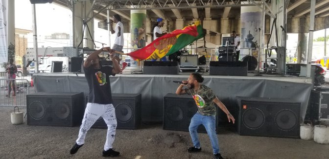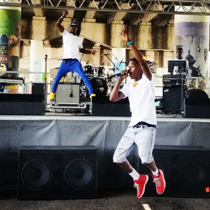 I arrived at the stage right when a female singer was wrapping up her performance, but I was happy I got there at that moment to hear the Ragin Rebelz, whom I never heard of. They had me dancing and gyrating to there deep sick hot lyrics with dope Reggae and New Orleans beat. They performed for us, feeling their sound they jumped and moved from one part of the stage down to the dance floor. The one artist waved their flag in the air with pride beaming from his movement. They were the right type of hype, staying true to their namesake “Ragin Rebelz,” which I can hear as I type.