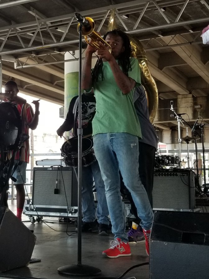 The Where Ya At Band was excellent, the horns and drums were able to penetrate our hearts, moving us to dance. I was a little thrown off as the Hype Man kept saying, “6th Ward” I heard myself say “I thought we were in the 7th Ward,” but all it takes is crossing the street to be in another Ward, but we were celebrating the Treme 7th Ward. I hope he didn’t get reprimanded for it, and he did mention they just came from another performance. It was an easy mistake, but ish we were in the 6th Ward after all lol.