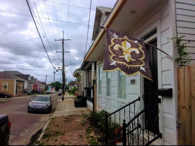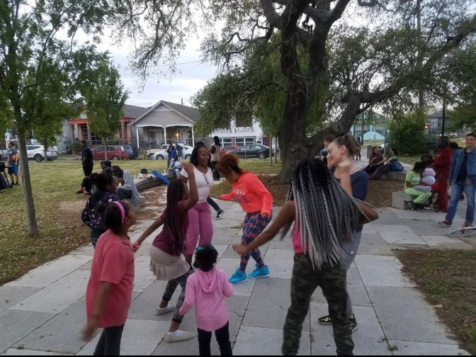 Without looking, I can see my neighbors sitting on their porches. The smooth, soulful sounds of Frankie Beverly and Mase playing simultaneously with the sounds of snapping fingers, clinking glasses, the shuffling of playing cards, and the cheerful greetings of New Orleanians who proudly let their thick New Orleans accents roll off their tongues. “How are you doing, babe? Tell, yea Mama to bring y’all down here later to get a fish plate, ya hear.” The music is turned up when a New Orleans beat is heard, lifting everyone out of their seats before the verse comes in. They proudly sing along with one of Nola’s Shining Stars as if the artist is one of the family, but in essence, we all are connected by our extended families, communities. Handkerchiefs are pulled out, signaling the start of an impromptu New Orleans SecondLine Dance. Colorful pieces of fabric dance in the air while feet and hips stomp the porch and sidewalk with soulful rhythm. The beat has caught ahold of the kids; playing is put off till later to join in on the cultural dancing and unplanned celebration. We didn’t miss the SecondLine after all…