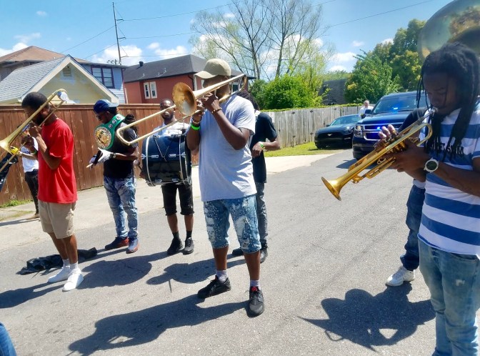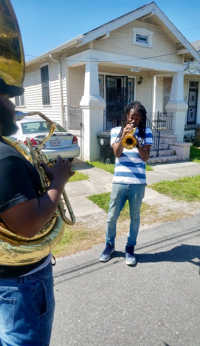 Before she dashes of to the land of creativity and imagination that continues to exist in the minds of New Orleans little boys and girls, she yells, “Mommy, it’s really nice outside we should go to the Second line! I feel much better now, Mommy! Oooh, Mommy, those people are back at the park, giving out snow cones and cotton candy again. I see the truck! Can we go over there? I’ll get some for you, ok, Mommy?” Off they go, leaving the door wide open, but closed the screen door without a reminder. I walk toward the living room to close the door, but I was met with the wondrous sights, sounds, and scents of New Orleans. She’s right, and it was better than a beautiful day! I found myself stuck in my doorway with my head leaning on the doorframe with my eyes closed taking it all in.