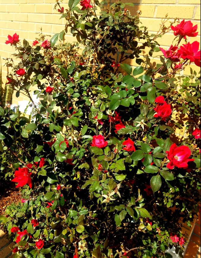 The sounding of the train’s horn has stirred up the dogs. They all join in with different ranges of barks, some barks sound to echo “Welcome home!” While the others sound grouchy because they can’t chase the train up the track. As the train settles in and the dogs settle down, the church bells and random cockadoodle doo of the neighbor rooster sing the song of Mr. Time. The church bells ring at 6 o’clock. And I have been glued to my porch for hours.