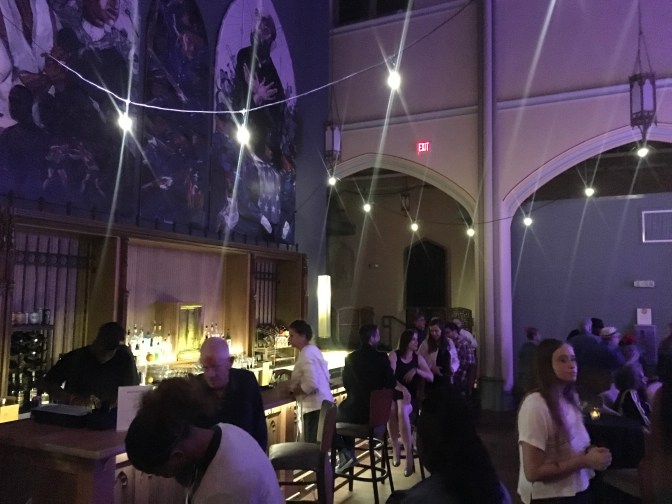 The audience poured out into the lobby of what once was a church turned Southern Rep Theatre to enjoy appetizers and champagne. We were treated to an impromptu performance by who fascinated us with her voluptuous body and beat to the gawds face!