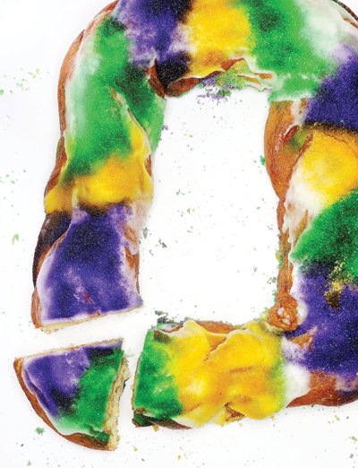 Today the “traditional” King Cake is made from twisted strands of cinnamon dough, covered by poured sugar and sprinkled with purple, green, and gold-colored sugar. The “Zulu King Cake” has chocolate icing with a coconut filling. A tiny plastic baby is hidden in the King Cake as a prize. While custom holds that the person who “finds” the baby will be rewarded with “good luck,” that person is also traditionally responsible for bringing the King Cake to the next party or gathering.