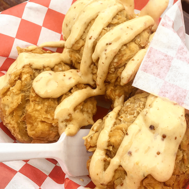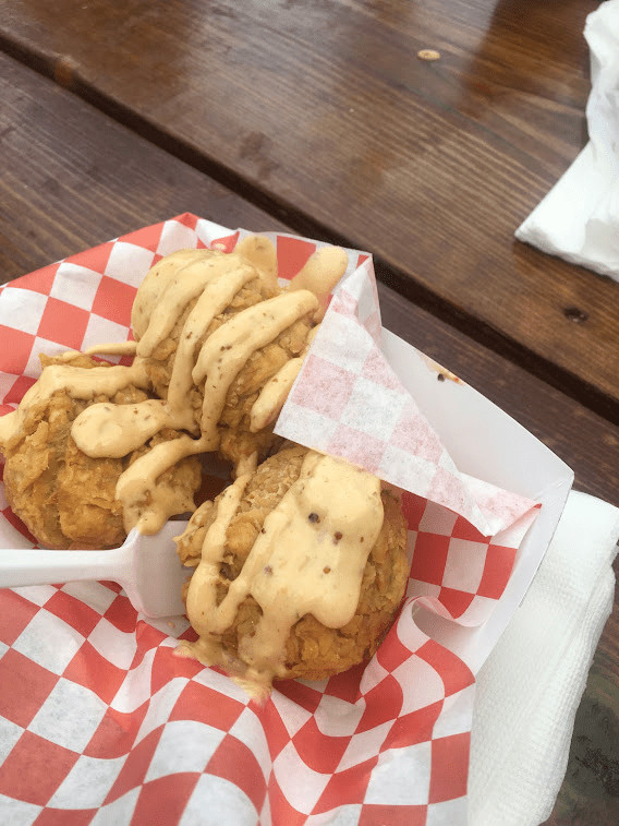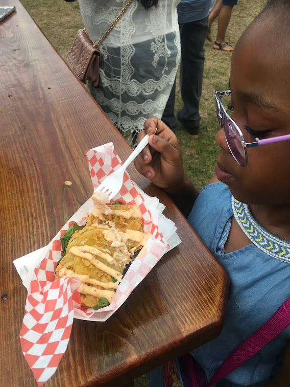 Big Chief Monk Boudreaux and the Golden Eagles at the French Quarter Fest 2019!Cloudy yet lovely day at the New Orleans French Quarter Fest 2019 Fried Green TomatomatosFried StuffedBell Peppers