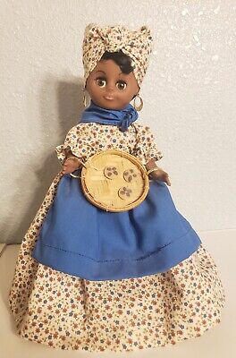 The Pickaninny doll is one of the most historically significant dolls to be created. It resembles little slave girls running and playing on the grounds of a plantation with their short thick hair combed in many small plaits covering their heads. Enslaved people living and working in the main plantation house were more likely to have access to high-quality scraps such as black rags or thick black cords until black rug yarn for doll-making. Still, enslaved people working in the field must be more creative regarding materials. They would make dolls from whatever they had, whether the bones of a chicken, a nut, a cornhusk, an empty gourd, a mop, a broom, or a black nipple from a baby bottle. The person creating the doll as a saleable product made it more saleable by trying colorful strips of cloth on the plaits and drawing the Pickaninny doll in colorful outfits. Red was the most popular, but also red and white gingham, red and white polka dots, and red and black handkerchief print. The Pickaninny doll became one of the bestselling dolls in the South, especially in New Orleans French Quarter souvenir shops.