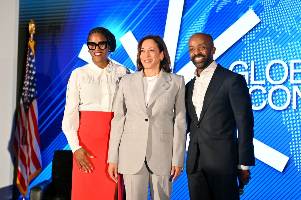 NEW ORLEANS, LOUISIANA – JUNE 29: (L-R) Thasunda Brown Duckett, President & CEO of TIAA, Kamala Harris, Vice President of the United States and Alphonso David, President & CEO of the Global Black Economic Forum attends the Global Black Economic Forum’s Access & Economic Opportunity summit at. the 2023 ESSENCE Festival at Ernest N. Morial Convention Center on June 29, 2023 in New Orleans, Louisiana. (Photo by Paras Griffin/Getty Images for ESSENCE )